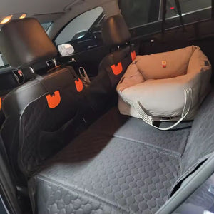 Keep your backseat clean and your dog safe on every trip with durable, easy-care protection