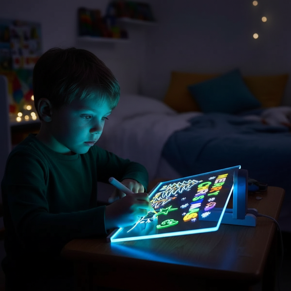 A reusable glowing board centralizes reminders and schedules so everyone knows what to do, reducing missed tasks and speeding morning routines.