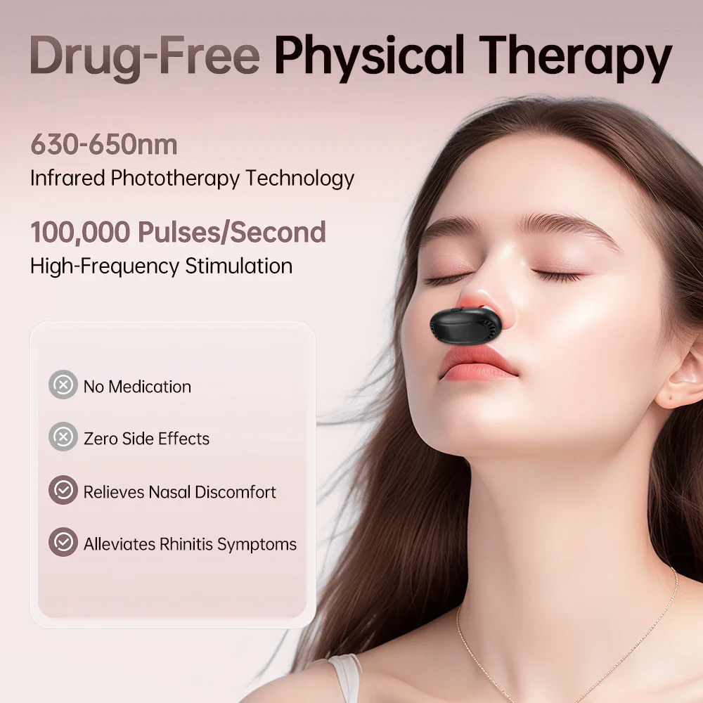 🌬️ Breathe easy again! This smart infrared nasal therapy device uses 🔴 gentle red light & pulse massage to clear congestion, relieve sinus pressure, and calm your runny nose — all 💊 drug-free and pain-free. Compact, rechargeable, and ready anytime you need clear comfort. 🌿💆♂️