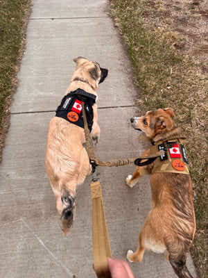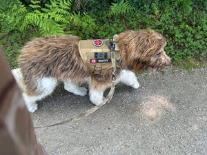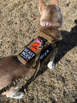 Secure, comfortable walks with quick-release metal buckles, padded fit, reflective straps for visibility and tactical patches for training control