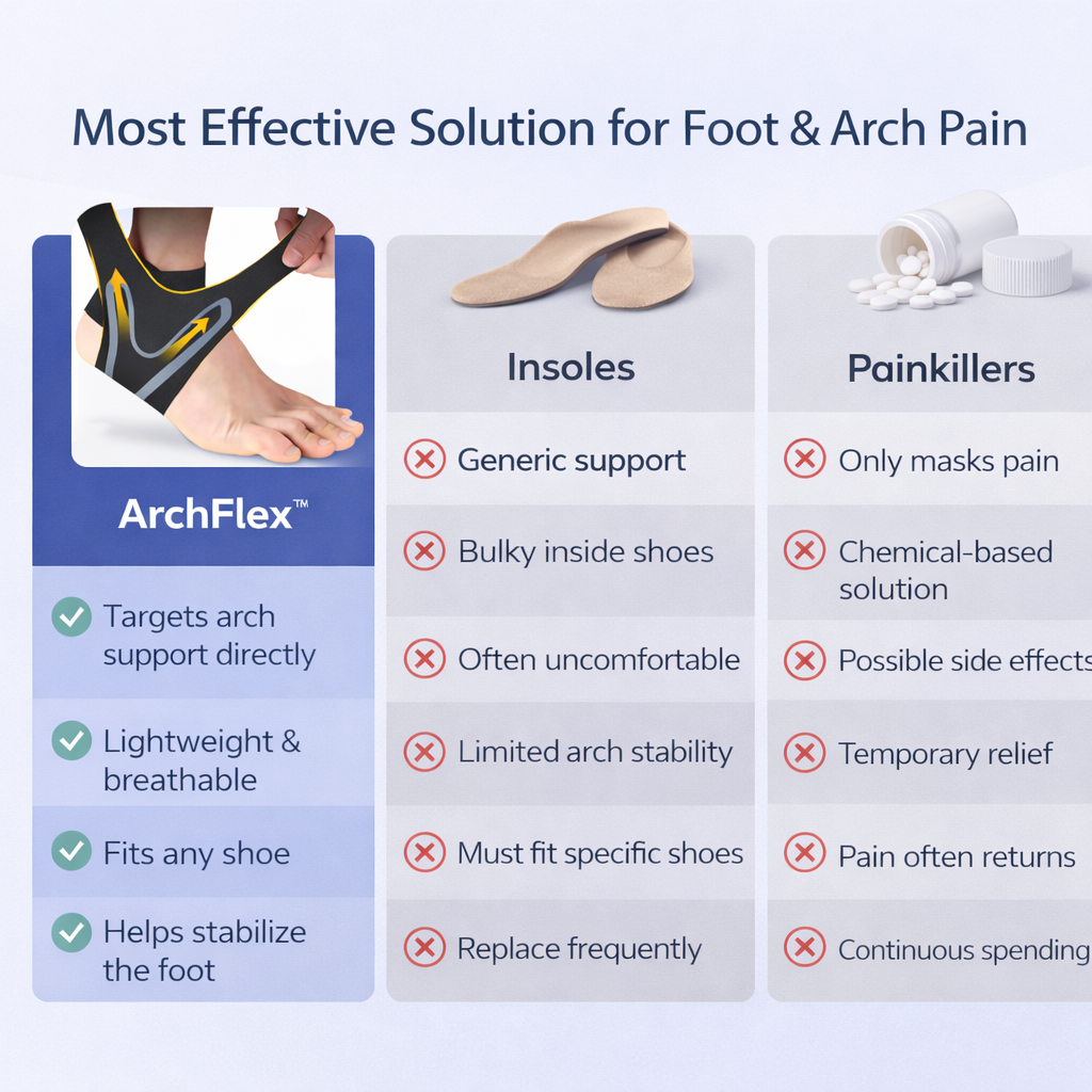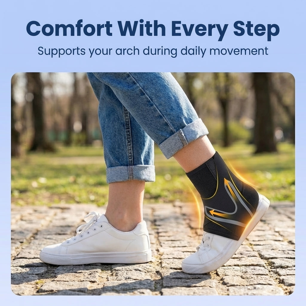 Imagine the feeling of strong, stable support with every step. ArchFlex™’s flexible compression design helps support your arch and reduce pressure, creating better balance and everyday comfort whether you’re walking, working, or playing sports.