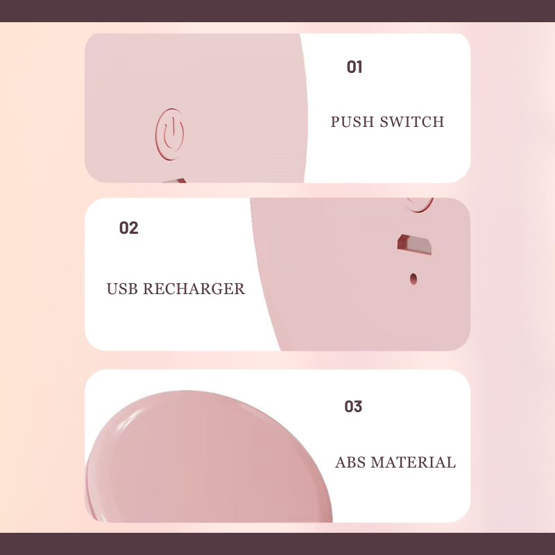 The design is adorable, and the lighting is amazing. Makes touch-ups so much easier. 💄 — Sofia L.