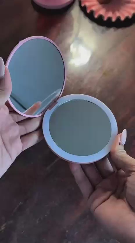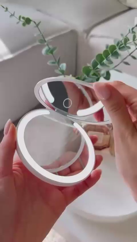 This 2-sided folding mirror features bright LED lights for perfect visibility — even in dim places. Compact, lightweight, and stylish, it fits easily in your purse or pocket.