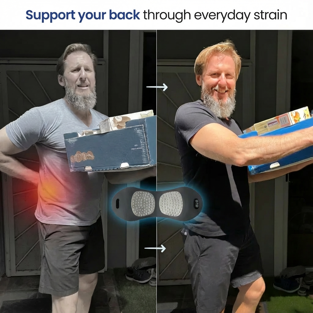 TheraVibe™ combines soothing heat with targeted vibration therapy to relax tense muscles, improve blood circulation, and reduce nerve pressure - providing natural relief from back pain, stiffness, and sciatica discomfort.