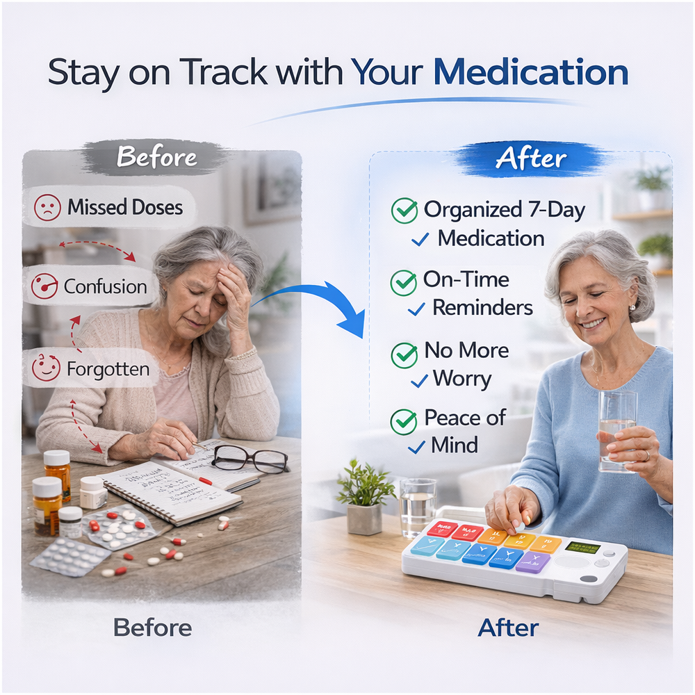 Peace of mind for daily medication — without missed doses or constant worry.